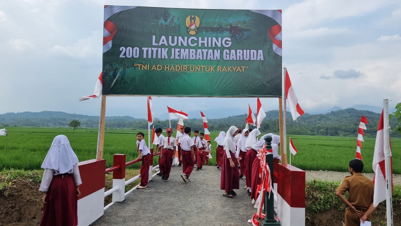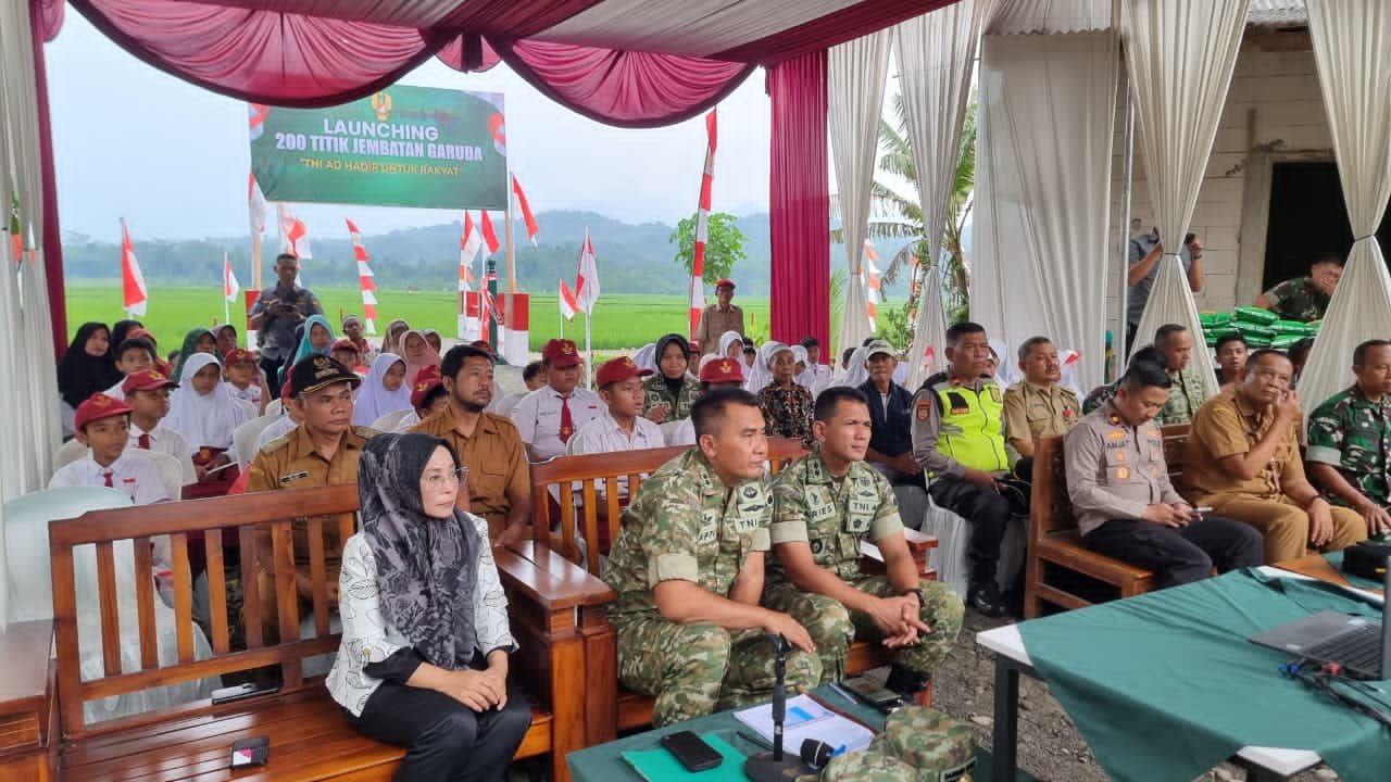 Kegiatan yang berlangsung mulai pukul 15.50 WIB hingga 17.00 WIB tersebut mengusung tema “TNI AD Hadir untuk Rakyat” dan dilaksanakan secara daring melalui video conference yang terhubung dengan sejumlah wilayah penerima program pembangunan jembatan di Indonesia lainnya.