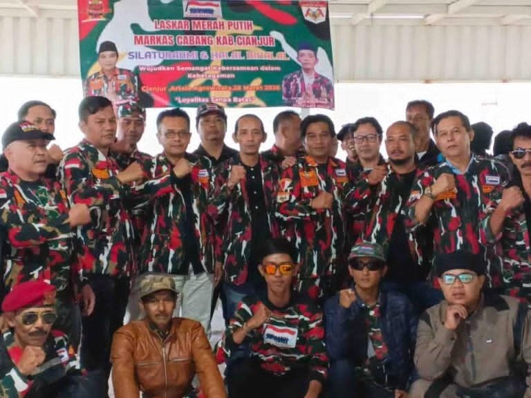 BN News. Cianjur || Laskar Merah Putih (LMP) Markas Cabang Kabupaten Cianjur menggelar kegiatan Halal Bihalal yang dirangkaikan dengan santunan kepada 30 anak yatim, Sabtu (28/3/2026).