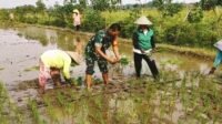 Wujudkan Ketahanan Pangan Wilayah, Babinsa Srengat Dampingi Warga Tanam Padi