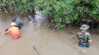 Karya Bakti Koramil Barabai, Ajak Warga Mandingin Dan Kias Bersihkan Aliran Sungai