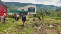 Bentuk Kepedulian, Aparat Gabungan TNI-Polri di Distrik Bokondini Gotong Royong Timbun Jalan Rusak Akibat Hujan