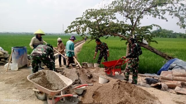 Aksi Nyata Babinsa Koramil Taman Kawal Rehabilitasi Jaringan Irigasi Swakelola Tipe 2