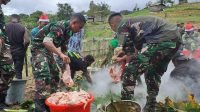 Awali Tahun 2024, Satgas Yonif 310/KK dan Warga Pegunungan Bintang Lakukan Bakar Batu